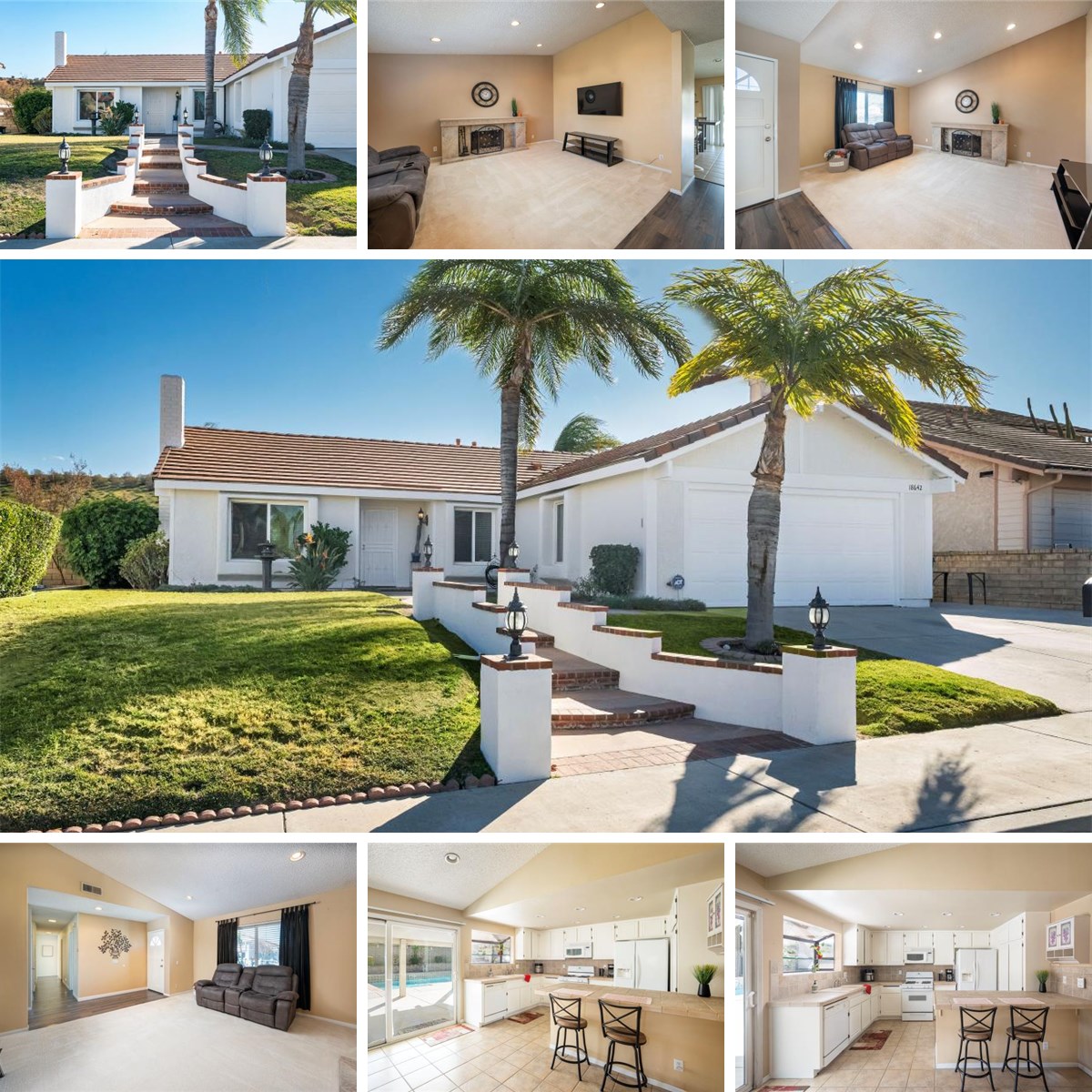 Discover this charming single-story pool home in Newhall. Situated on a peaceful cul-de-sac, this gem offers 3 bedrooms and 2 bathrooms, plus a bonus office, den, or potential 4th bedroom—all within 1,460 square feet of living space. This home seamlessly blends charm with modern upgrades throughout. The freshly painted exterior and newer double-pane windows enhance the fantastic curb appeal, complemented by the beautifully landscaped front yard with custom brick hardscaping, stylish lantern accents, and a welcoming pathway to the entrance.