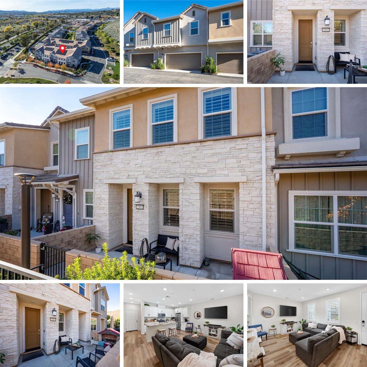 3 bedroom plus loft townhome with 2.5 bathrooms, 1490 sq ft, an attached 2 car garage, and an upstairs laundry room in the Concord at River Village community. Built in 2020, this home features luxury vinyl plank flooring, plantation shutters, energy-efficient solar, a QuietCool whole house fan, tankless water heater, and an EV charging outlet. The first floor has an open concept layout with a large kitchen island, granite countertops, stainless steel appliances, dining area, living room, powder room, and direct garage access. The second floor includes the primary suite with dual sinks and a walk-in closet, two additional bedrooms, a full bathroom, a loft, and a dedicated laundry room. This home is located in a quiet section of the community with no front neighbors and a private patio. Community amenities include a resort-style pool, spa, clubhouse, BBQ area, and a tot lot. There is also a convenient neighborhood path that provides access to Central Park. Close proximity to shopping, dining, bike paths, and local conveniences. If you are searching for a newer Saugus home with modern upgrades, efficient systems, and a low-maintenance lifestyle, this is an excellent opportunity. Low HOA & mello roos. Near Emblem Elementary, Arroyo Seco JHS, and Saugus High School!
