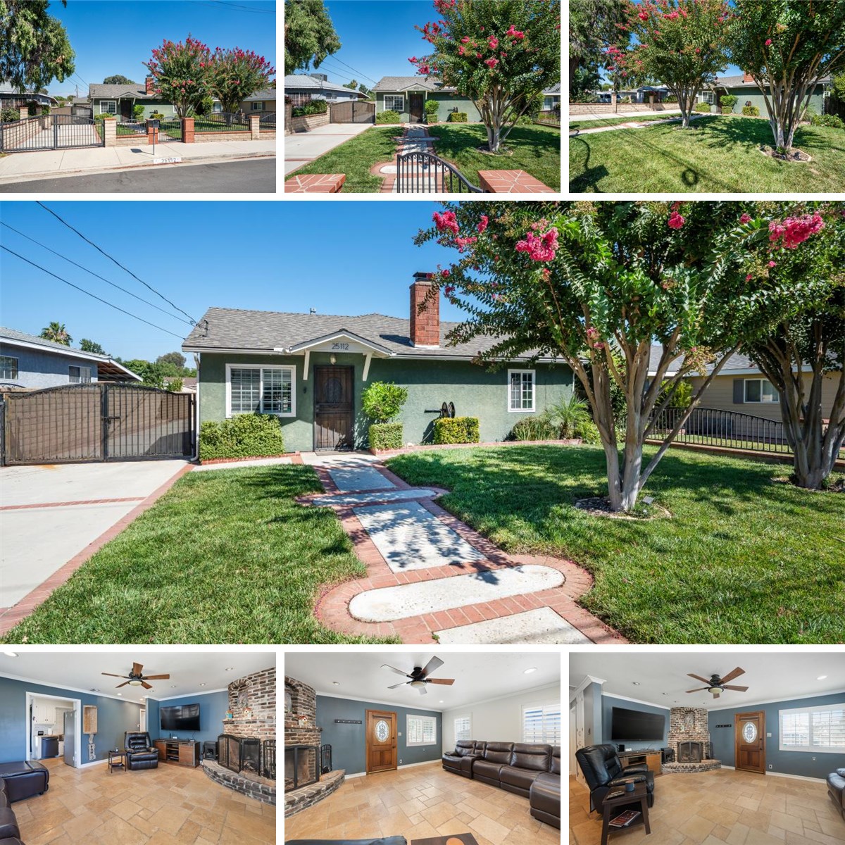 Charming Single-Story Home on a Gated Lot with Upgrades Throughout! Come and see this beautifully updated single-story home featuring a fully fenced, grassy front yard that sets the tone for the warm character inside. Step into the inviting living room, highlighted by a custom curved brick fireplace with a raised hearth, crown molding, plantation shutters, and a ceiling fan—creating the perfect cozy retreat. The recently remodeled kitchen is a true standout, boasting butcher block counters, a white tile backsplash, a farmhouse sink with prep station, and sleek LG appliances (all under one year old!). An oversized dining area offers space for gatherings and includes a laundry closet with washer/dryer (both under 2 years old), a utility sink, and direct access to the backyard. Recessed lighting enhances the hallway leading to the bedrooms. The expansive primary suite is a true showpiece, featuring a large walk-in closet plus an additional closet, ceiling fan, and its very own raised brick hearth with a wood-burning heater—a striking focal point that adds both charm and warmth to the room. Sliding doors open to the backyard, while the ensuite bath has been tastefully upgraded with a step-in shower and custom tile mural. The secondary bedroom includes mirrored closet doors with built-ins, ceiling fan, and newer laminate flooring. The remodeled hall bath completes the interior with modern tile finishes. This home is also enhanced with smart features, including LED lighting throughout, a Nest thermostat, digital garage door controls, video doorbell, smart sprinkler system, and exterior lighting that can all be managed at the touch of a button. Step outside to a lush backyard retreat with producing cherry, pomegranate, and plum trees, a custom stone bar with built-in seating and BBQ, and a covered patio for year-round enjoyment. Multiple storage sheds, an extra-long driveway, and a detached oversized 2-car garage with 240V wiring provide abundant storage and functionality. Additional highlights include copper plumbing, water heater & HVAC system under 10 years old, and no HOA or Mello Roos. Conveniently located near shopping and freeway access for an easy commute.