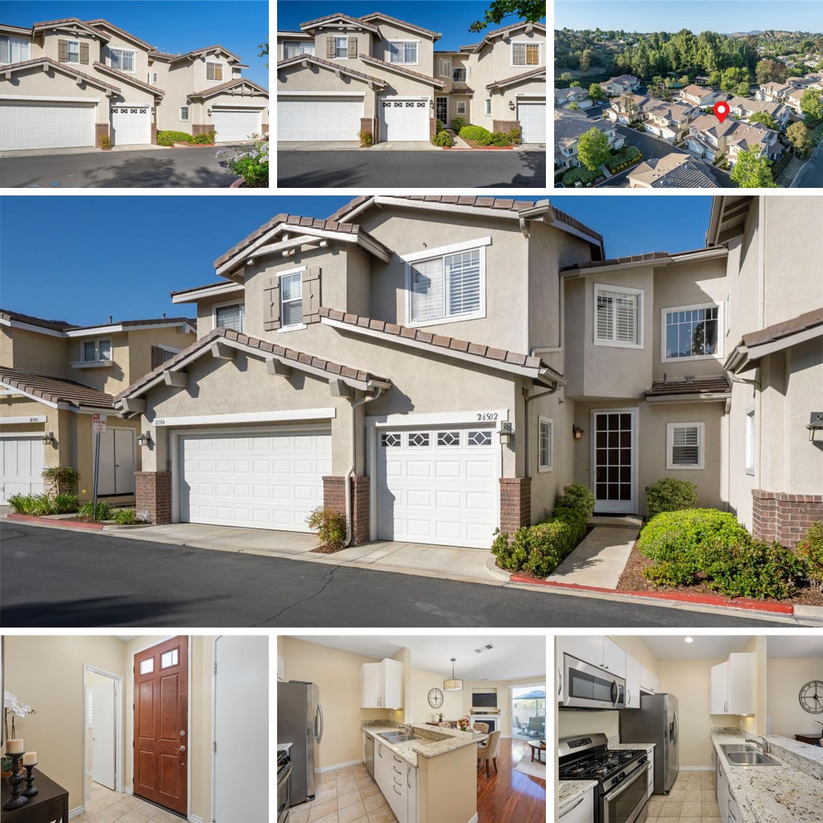 Welcome to this beautifully updated 2-bedroom, 2.5-bathroom townhome located in a prime area of Valencia. This charming residence offers a functional and inviting layout with thoughtful upgrades throughout. The main level features an open-concept design where the kitchen flows seamlessly into the dining area and living room, creating an ideal space for everyday living and entertaining. A sliding glass door from the living room opens directly to the private patio, providing a seamless indoor-outdoor flow perfect for relaxing or hosting. A convenient half bathroom is located downstairs, along with direct access to the attached one-car garage. In addition to the garage, the home includes a designated parking space outside. Upstairs, you will find a spacious bedroom next to a full bathroom, and a comfortable primary suite with its own bathroom. All windows have plantation shutters. This great home is ideally situated near shopping, dining, and everyday conveniences, with access to major commuter routes. This home offers both comfort and convenience in one of Valencia’s most desirable locations.